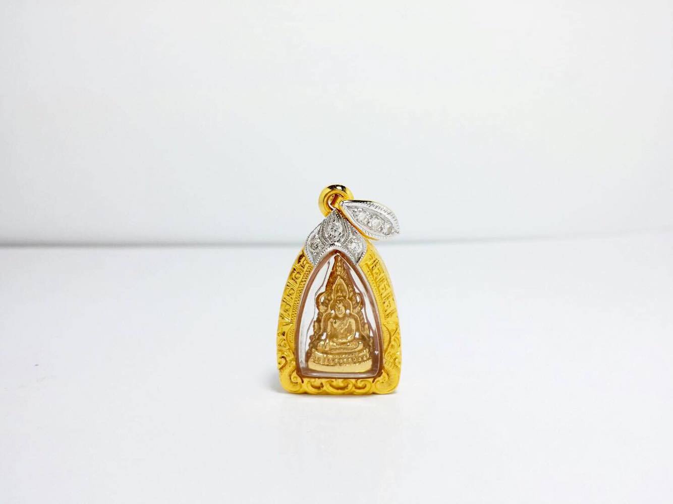 องค์พระพุทธชินราชทองคำแท้ น้ำหนัก 1 สลึง เลี่ยมทองคำแท้ 90% น้ำหนัก 3.8 กรัม ยกซุ้ม และห่วง ประดับเพชรแท้ 6 เม็ด 0.18 กะรัต น้ำ 99 เพิ่มเติม