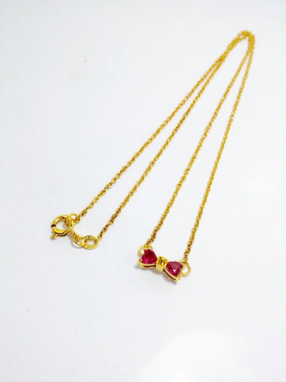 สร้อยคอพร้อมจี้ ทอง 9K น้ำหนัก 3.07 กรัม ความยาว 18 นิ้ว พร้อมจี้ทับทิมรูปหัวใจ สวยน่ารัก 2 เม็ด เพิ่มเติม