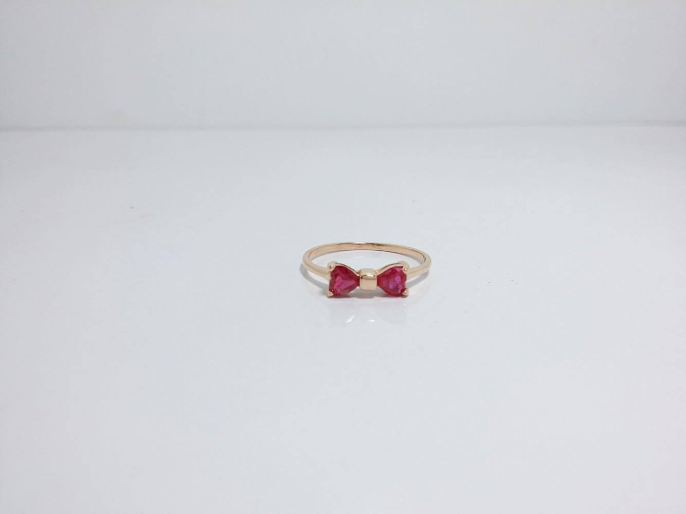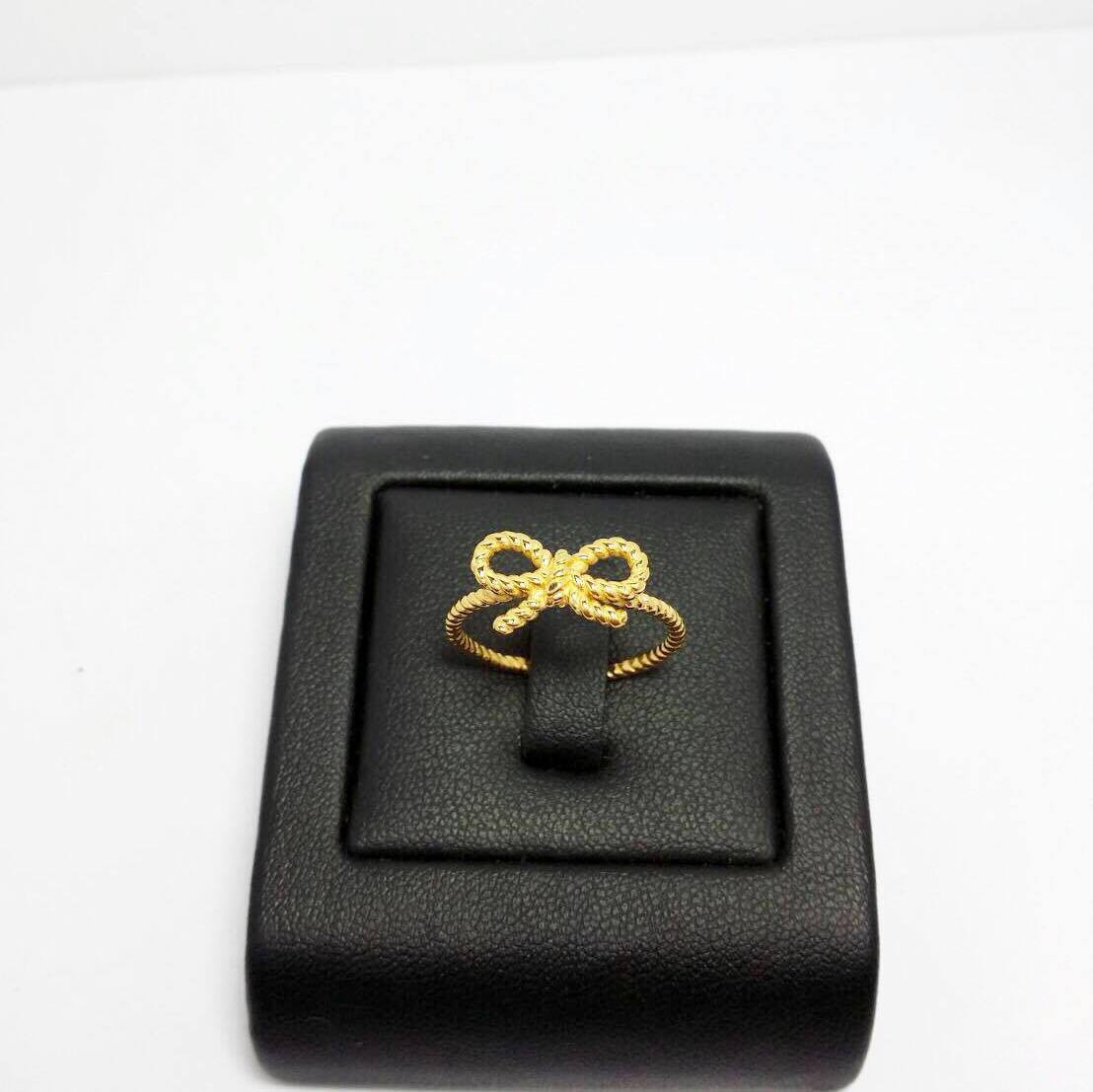 แหวนโบว์ สุดน่ารัก ประดับด้วยทับทิมแท้ สีแดงสด จากพม่า ตัวเรือนทองคำแท้ 9K น้ำหนัก 1.61 กรัม ไซด์แหวน สั่งได้ตามต้องการเพิ่มเติม
