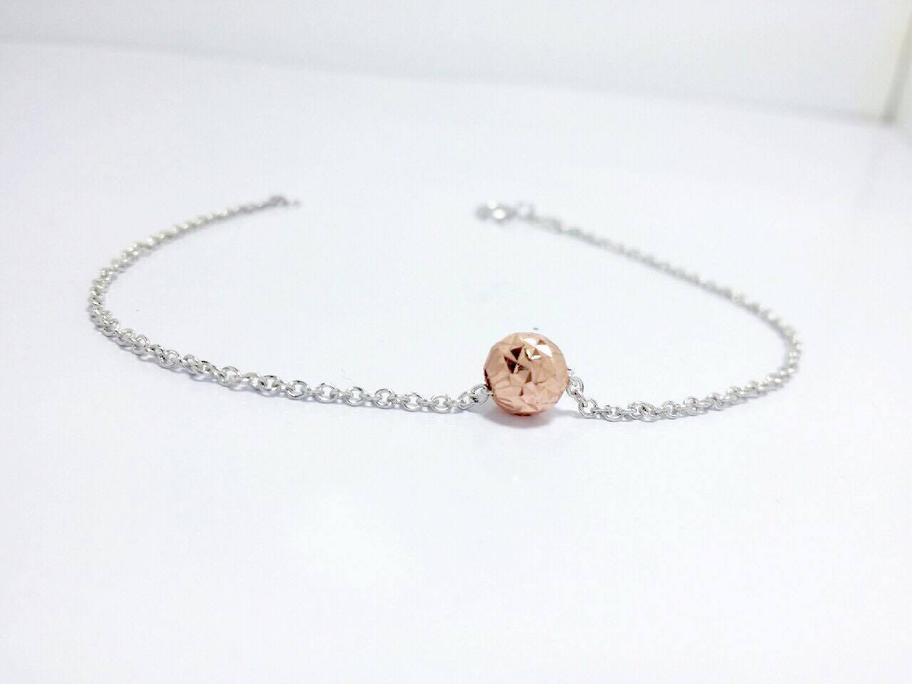 สร้อยข้อมือสวยเก๋ น่ารัก ทำจากทองคำขาว 9K มาพร้อมลูกตุ้มสีพิ้งโกลว์ น้ำหนัก 1.5 กรัม ความยาว 7 นิ้ว เพิ่มเติม