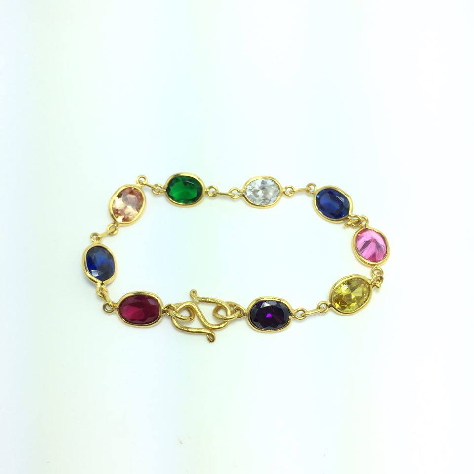 สร้อยข้อมือทองคำ 90% น้ำหนัก 2 สลึง พลอยนพเก้า 9 สี ขนาด 7*9 มิล ความยาว 7 นิ้วเพิ่มเติม