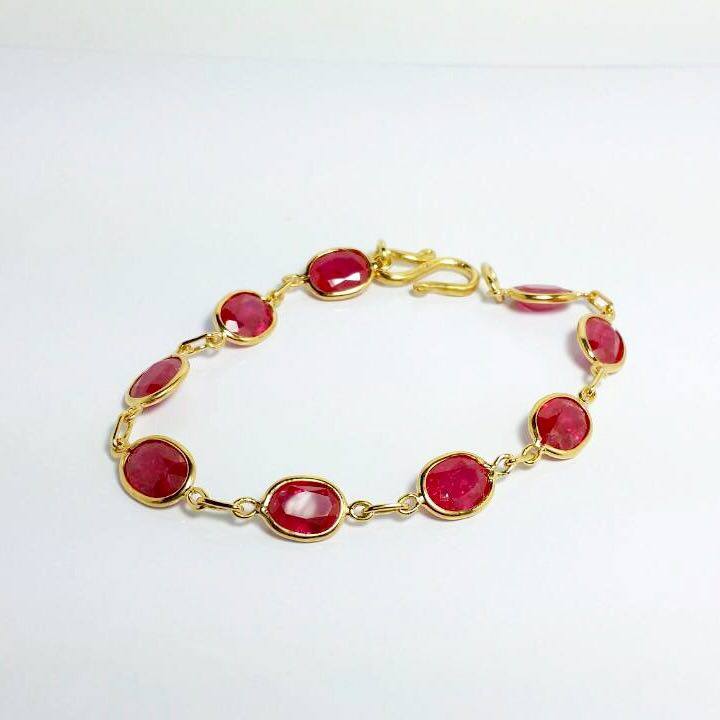 สร้อยข้อมือทองคำแท้ 90% น้ำหนัก 2 สลึง พลอยแดงทับทิม ขนาด 7*9 มิล ความยาว 7 นิ้วเพิ่มเติม