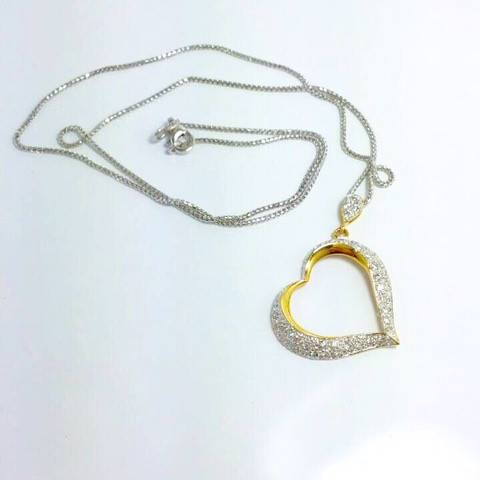 จี้ทรงหัวใจ ขนาดใหญ่ สวยหรู ตัวเรือนทอ 90% หนัก 3.3 กรัม ฝังเพชร 46 เม็ด 0.92 กะรัต น้ำ 97 vs ขาว สวย พร้อมสร้อยคอทองคำขาว ยาว 20 นิ้ว น้ำหนัก 4.16 กรัม ลายกระดูกงูเพิ่มเติม