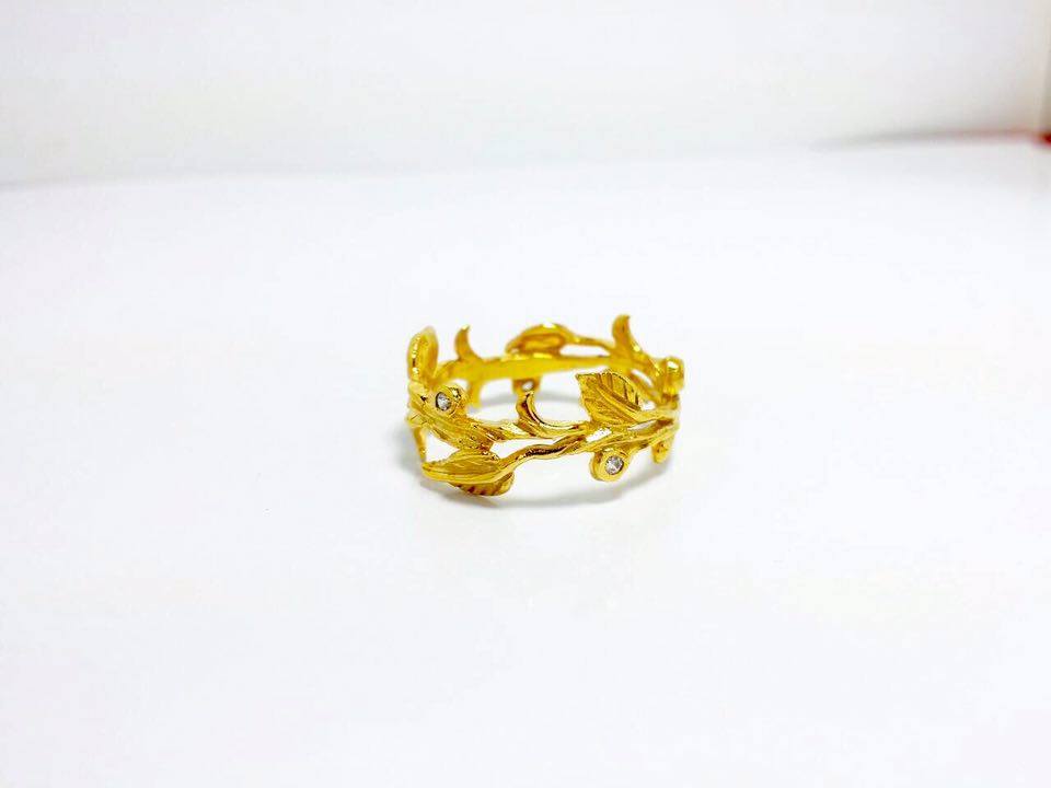 แหวนใบไม้ ทรงมงกุฏ ตัวเรือนทอ 9K หนัก 3.17 กรัม / ประดับพลอยขาว 4 เม็ด สวยวิ้ เหมือนเพชรแท้ / ไซด์ 55เพิ่มเติม