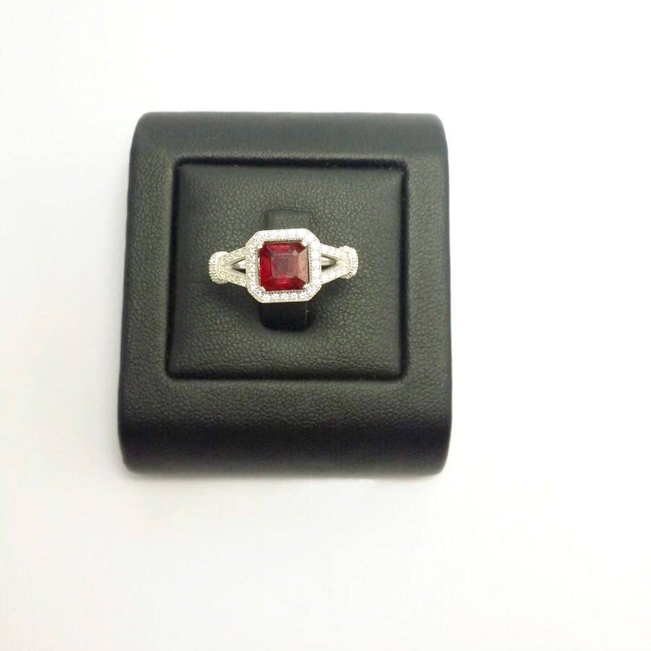 แหวนทับทิมพม่าแท้ สีแดงเลือดนก หายากมากๆ น้ำหนัก 1.46 กะรัต ล้อมด้วยเพชรแท้ จำนวน 53 เม็ด หนักกว่า 0.27 กะรัต ตัวแหวนเป็นทองคำขาว น้ำหนัก 5 กรัม สามารถสั่งทำตามไซด์นิ้วได้คะเพิ่มเติม