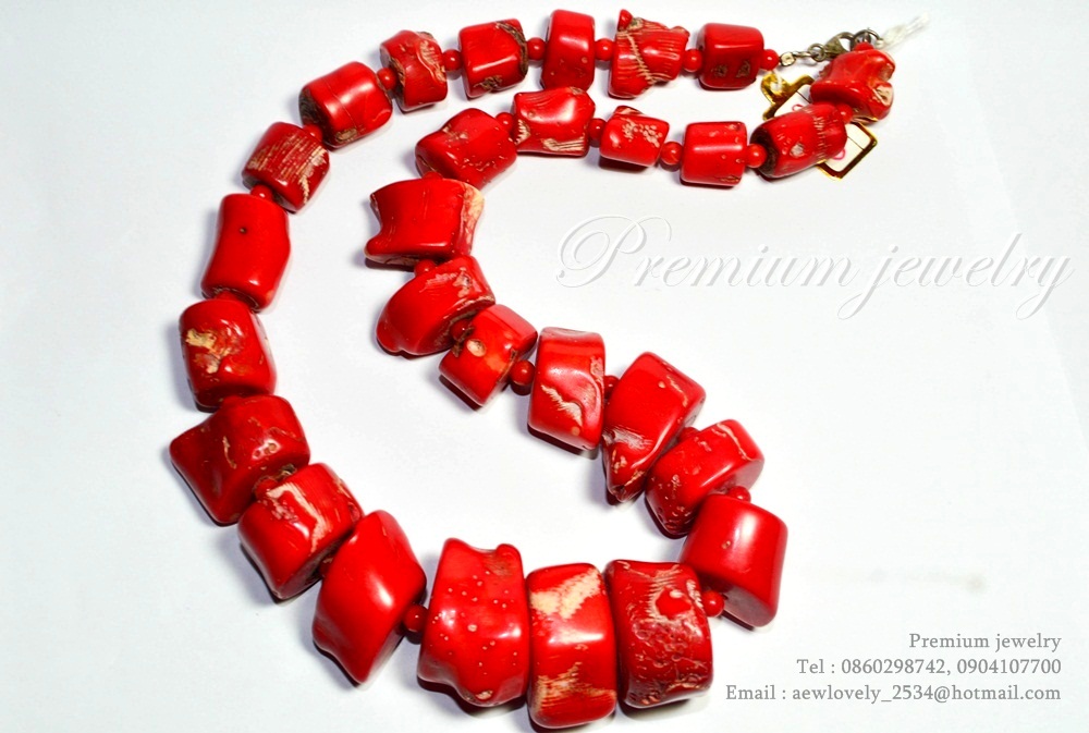 สร้อยประการังกลายเป็นหินแท้ สีแดงสด สวยหรูมาก เป็นประการังน้ำโชค เสริมมงคล หายากมากเพิ่มเติม