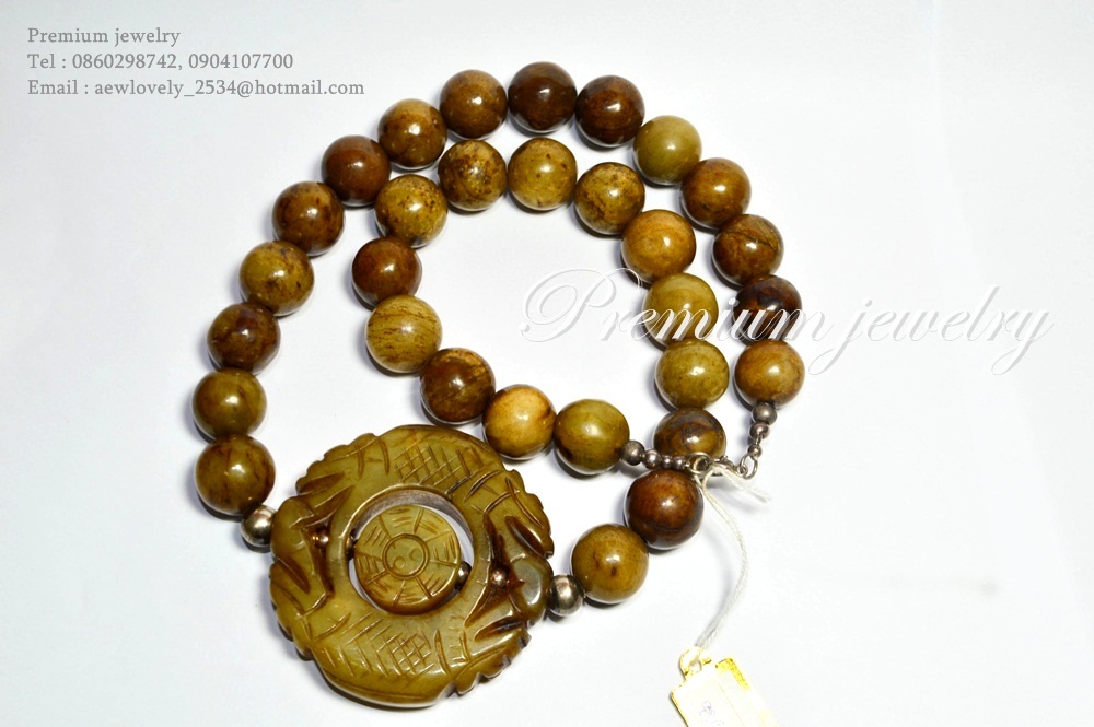 สร้อยหยกแท้ สีน้ำตาล ลายสวยมาก เป็นหยกนำโชค แกะสลักสวยงาม เสริมมงคล ช่วยป้องกันอันตราย มีโชคลาภร่ำรวเพิ่มเติม