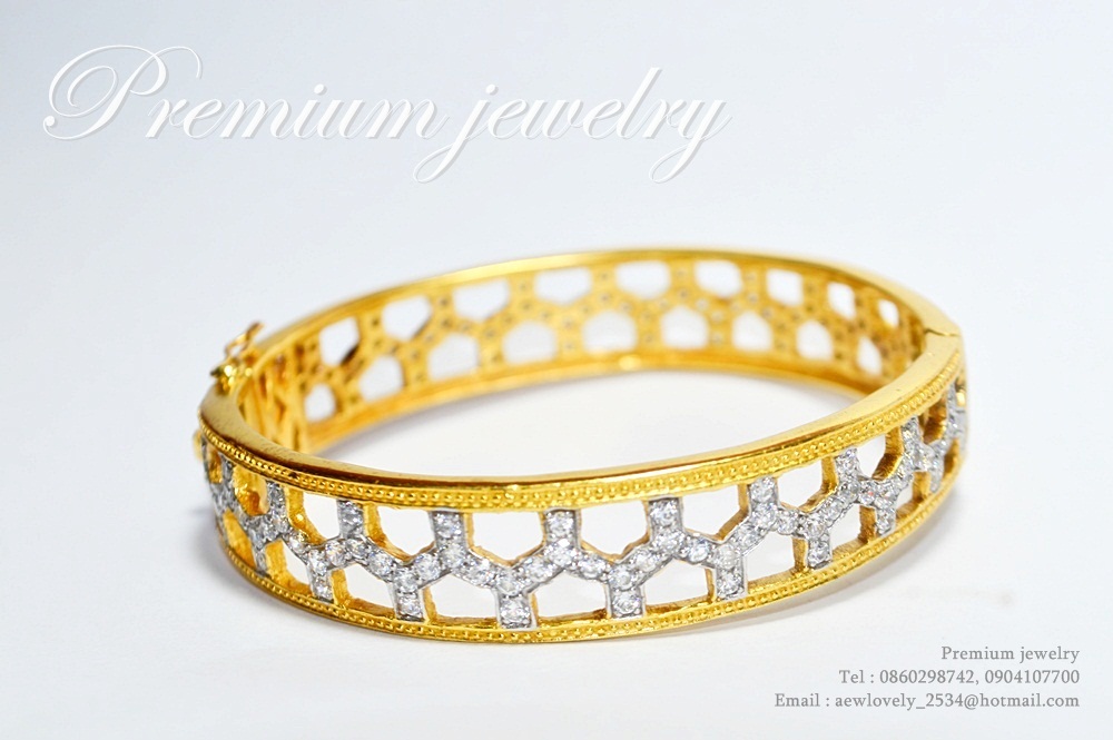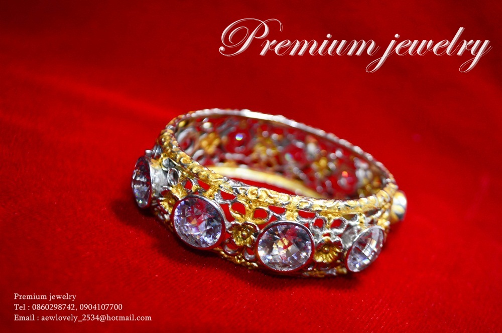 กำไลเงิน หุ้มด้วยทองคำแท้ ฉลุลวดลายดอกไม้ ประดับด้วยคริสตัลสวารอฟกี้แท้ สีขาวบริศุทธิ์ เพิ่มเติม