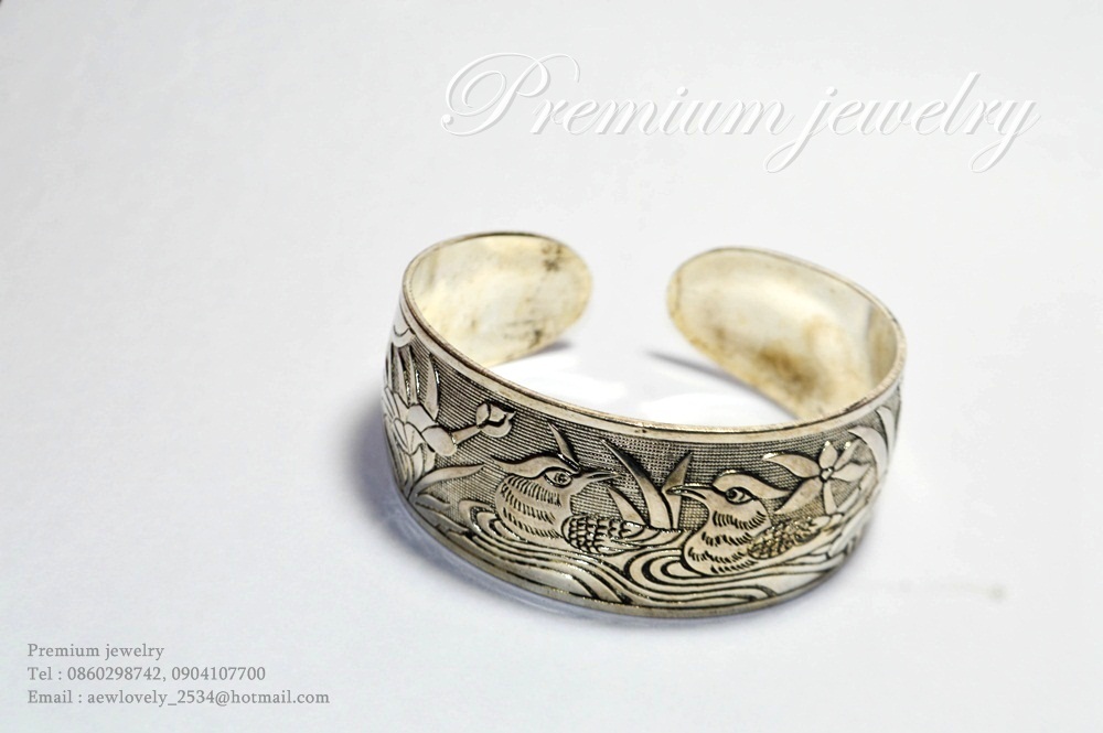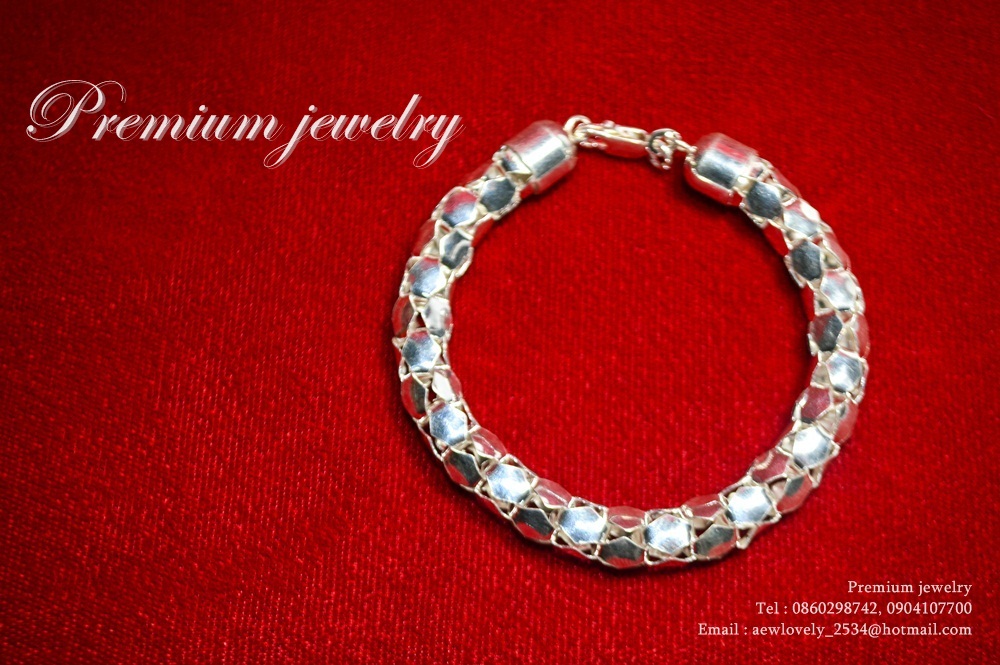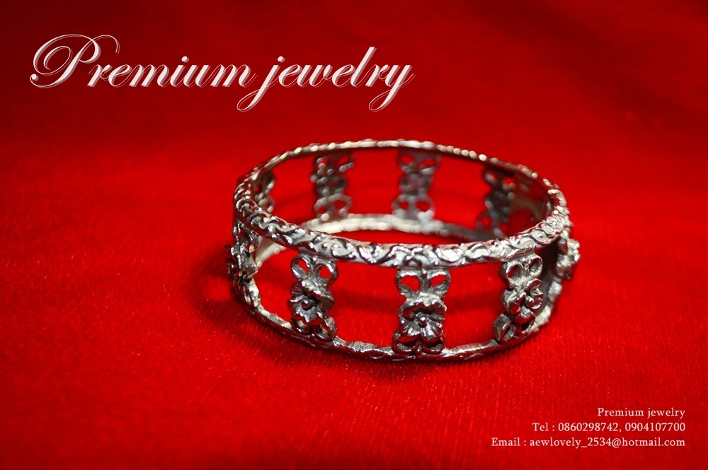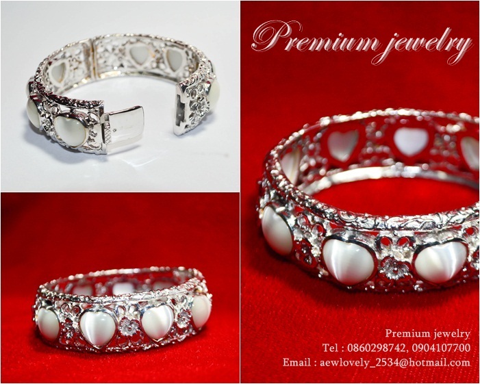 กำไลเงิน หุ้มด้วยทองคำขาว ประดับด้วยหินมงคล สีขาวลายมุข รูปหัวใจ ฉลุลายไทย เพิ่มเติม