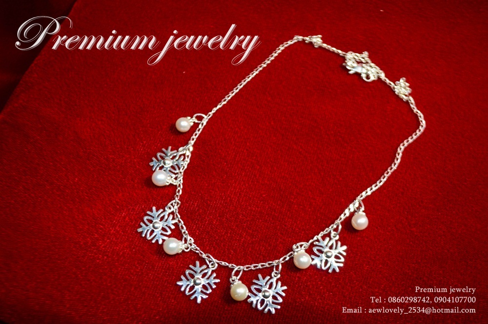 สร้อยเงิน หุ้มด้วยทองคำขาว แบบหลอดเงิน สามช่วง ประดับด้วยเลื่อนเงิน เคลื่อนไหวได้ เมื่อใส่แล้วจะเข้าเพิ่มเติม