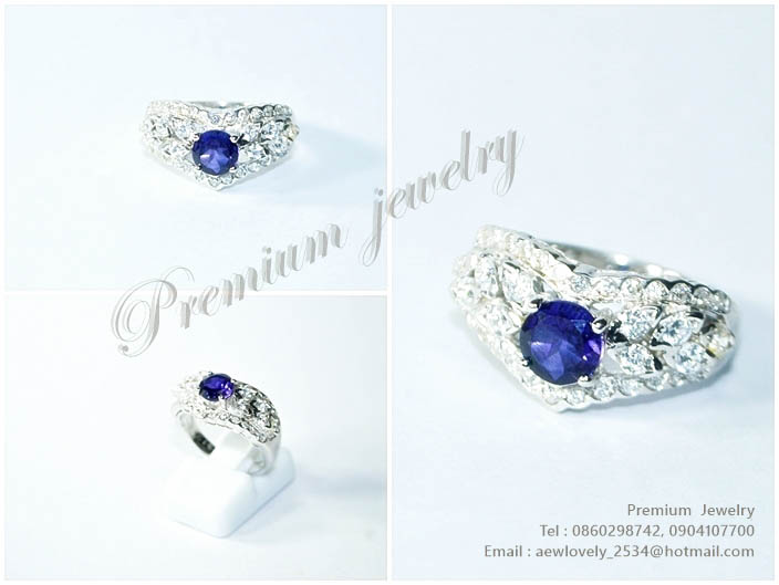 แหวนทองคำขาว ตัวเรือนด้านในทำจากเงินแท้ ประดับด้วยพลอยแท้สีม่วงเข้ม เพิ่มเติม