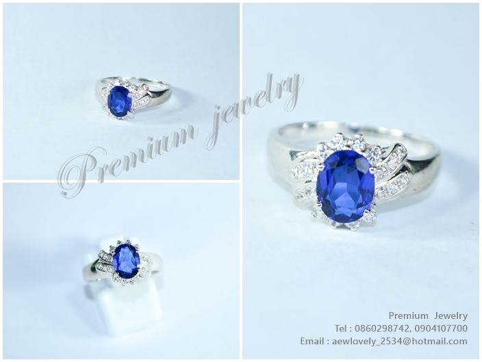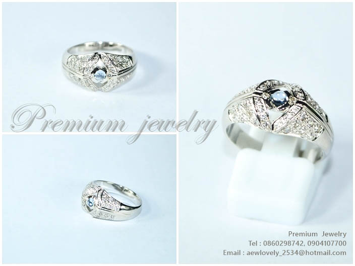แหวนทองคำขาว ตัวเรือนด้านในทำจากเงินแท้ ประดับด้วยเพชรสวิสเกรดเอ เม็ดยอดประดับด้วยพลอยแท้สีฟ้าอ่อน แเพิ่มเติม