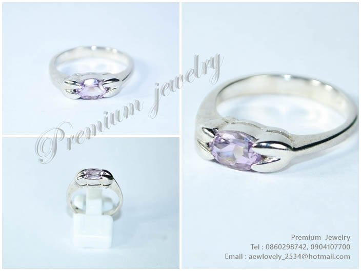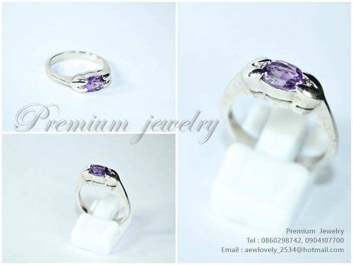 แหวนทองคำขาว ตัวเรือนด้านในทำจากเงินแท้ ประดับด้วยพลอยแท้สีม่วงอ่อน แบบเรียบๆเก๋ๆเพิ่มเติม
