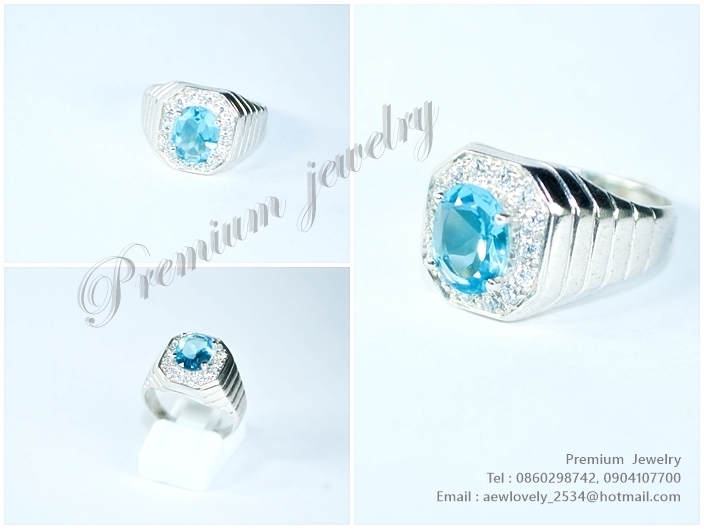 แหวนทองคำขาว ตัวเรือนด้านในทำจากเงินแท้ ประดับด้วยพลอยโทปาส เป็นพลอยแท้สีฟ้าเข้ม น้ำสวยมาก ล้อมด้วยเเพิ่มเติม