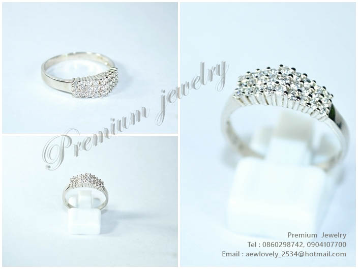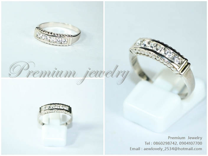 แหวนทองคำขาว ตัวเรือนด้านในทำจากเงินแท้ ประดับด้วยเพชรสวิสเกรดเอ แบบแถวเดียว เรียบสวย เพิ่มเติม