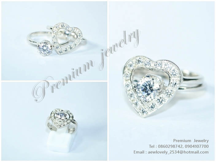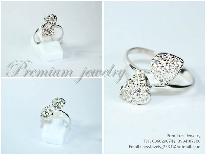 แหวนทองคำขาว ตัวเรือนด้านในทำจากเงินแท้ รูปหัวใจไขว้สองดวง ประดับด้วยเพชรสวิสเกรดเอ ทรงแบบผู้หญิงๆ สเพิ่มเติม