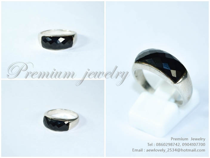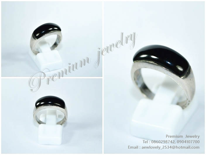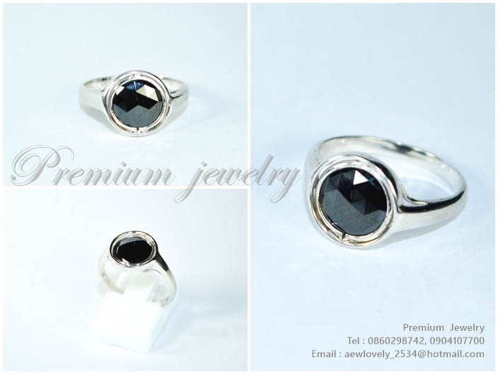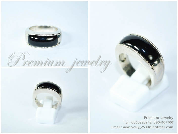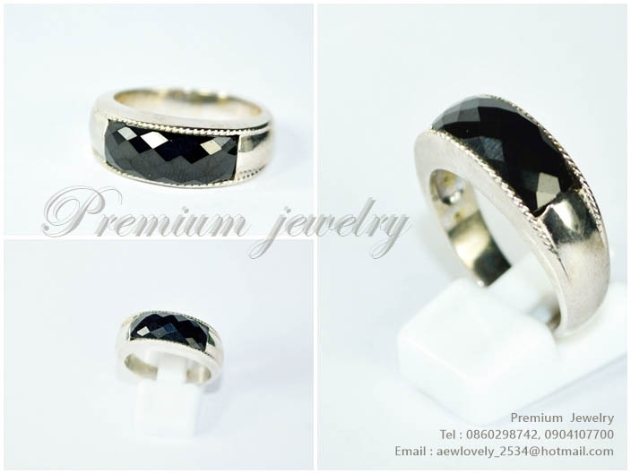 แหวนทองคำขาว ตัวเรือนด้านในทำจากเงินแท้ ประดับด้วยนิลแท้ และเพชรสวิสเกรดเอ ทรงแบบสามวงต่อกัน สวยน่ารเพิ่มเติม