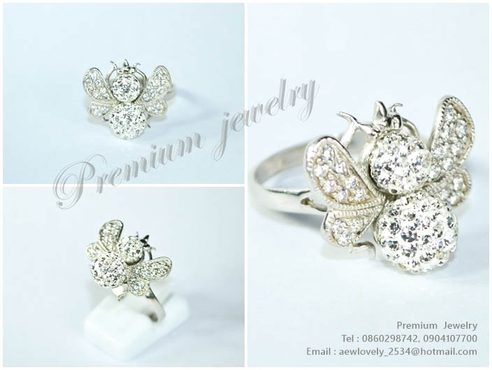 แหวนทองคำขาว ตัวเรือนด้านในทำจากเงินแท้ ทรงแมลงน้อยน่ารัก ด้านข้างประดับด้วยเพชรสวิสเกรดเอ ติดด้วยสวเพิ่มเติม