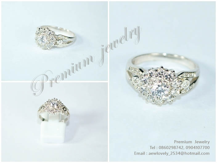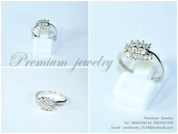 แหวนทองคำขาว ตัวเรือนด้านในทำจากเงินแท้ ทรงดอกไม้ ประดับด้วยเพชรสวิสเกรดเอ แบบสวยหรูมากเพิ่มเติม