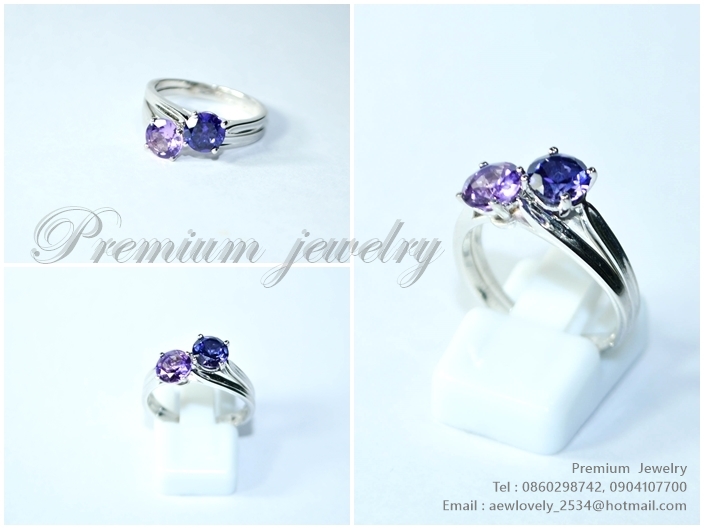 แหวนทองคำขาว ตัวเรือนด้านในทำจากเงินแท้ ประดับด้วยพลอยแท้ amethyst สีม่วงเข้มและสีม่วงอ่อน สวยเก๋มากเพิ่มเติม