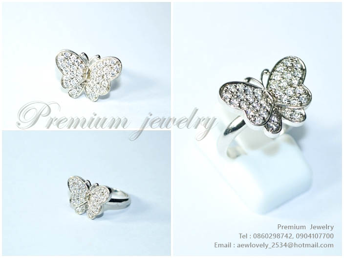 แหวนทองคำขาว ตัวเรือนด้านในทำจากเงินแท้ ทรงรูปผีเสื้อเต็มตัว สวย เก๋ น่ารัก ออกแบบมาโดยเฉพาะ เพิ่มเติม