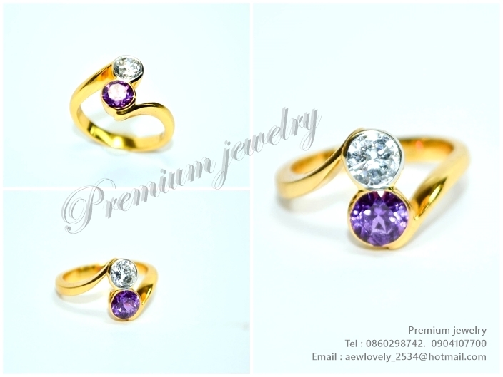 แหวนทอง 18K ตัวเรือนด้านในทำจากเงิน ประดับด้วยพลอยแท้สีม่วง amethyst และเพชรสวิสเกรดเอ แบบเรียบหรู ใเพิ่มเติม