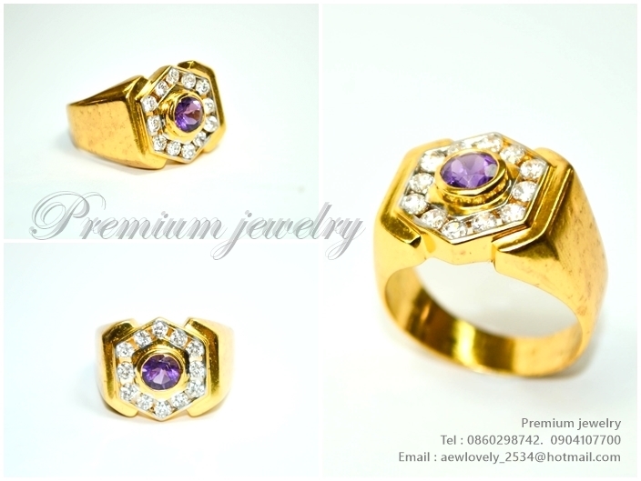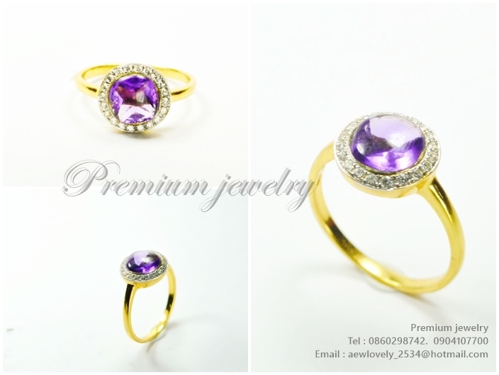 แหวนทอง18K ข้างในเป็นตัวเรือนเงิน เม็ดยอดประดับด้วยพลอยแท้ amethyst ล้อมด้วยเพชรสวิสเกรดเอ เพิ่มเติม