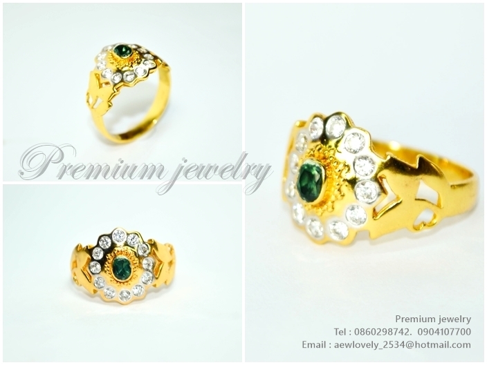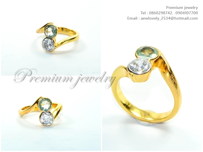 แหวนทอง 18K ตัวเรือนด้านในเป็นเงิน ประดับด้วยพลอยแท้สีเขียวออน สลับกับเพชรสวิสเกรดเอ เพิ่มเติม