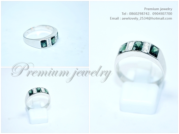 แหวนทองคำขาว ตัวเรือนด้านในทำจากเงิน ประดับด้วยมรกตแท้สีเขียวส่อง สลับกับเพชรสวิสเกรดเอ เรียบหรู สามเพิ่มเติม