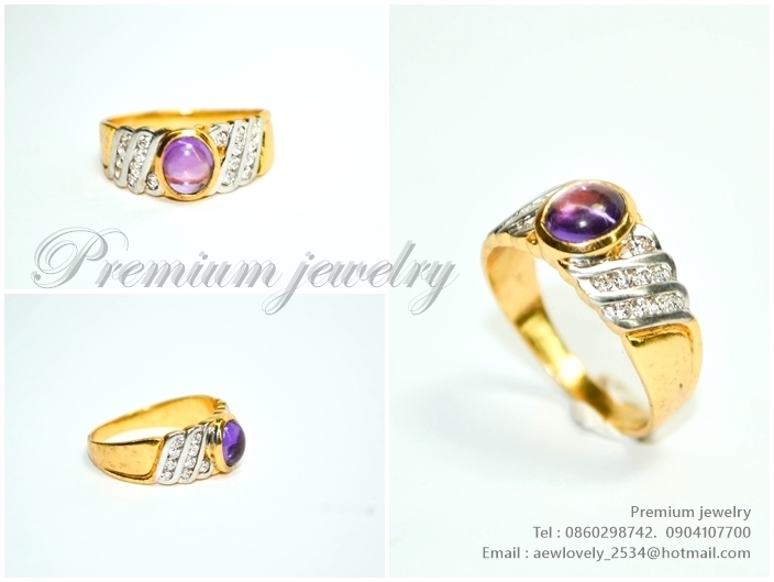 แหวนเงิน ชุปทอง 18K ฝังด้วยพลอยแท้สีม่วง หรือ amethyst สลับกับเพชรสวิสเกรดเอ เพิ่มเติม