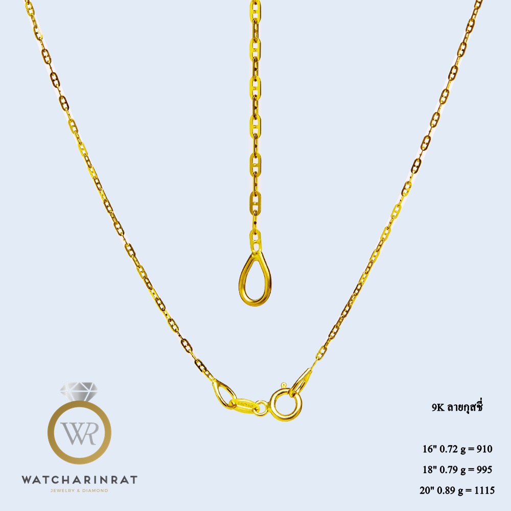 ความยาว 16 นิ้ว 0.72 กรัม ราคา 910 บาท ความยาว 18 นิ้ว 0.79 กรัม ราคา 995 บาท ความยาว 20 นิ้ว 0.89 กรัม ราคา 1115 บาทเพิ่มเติม