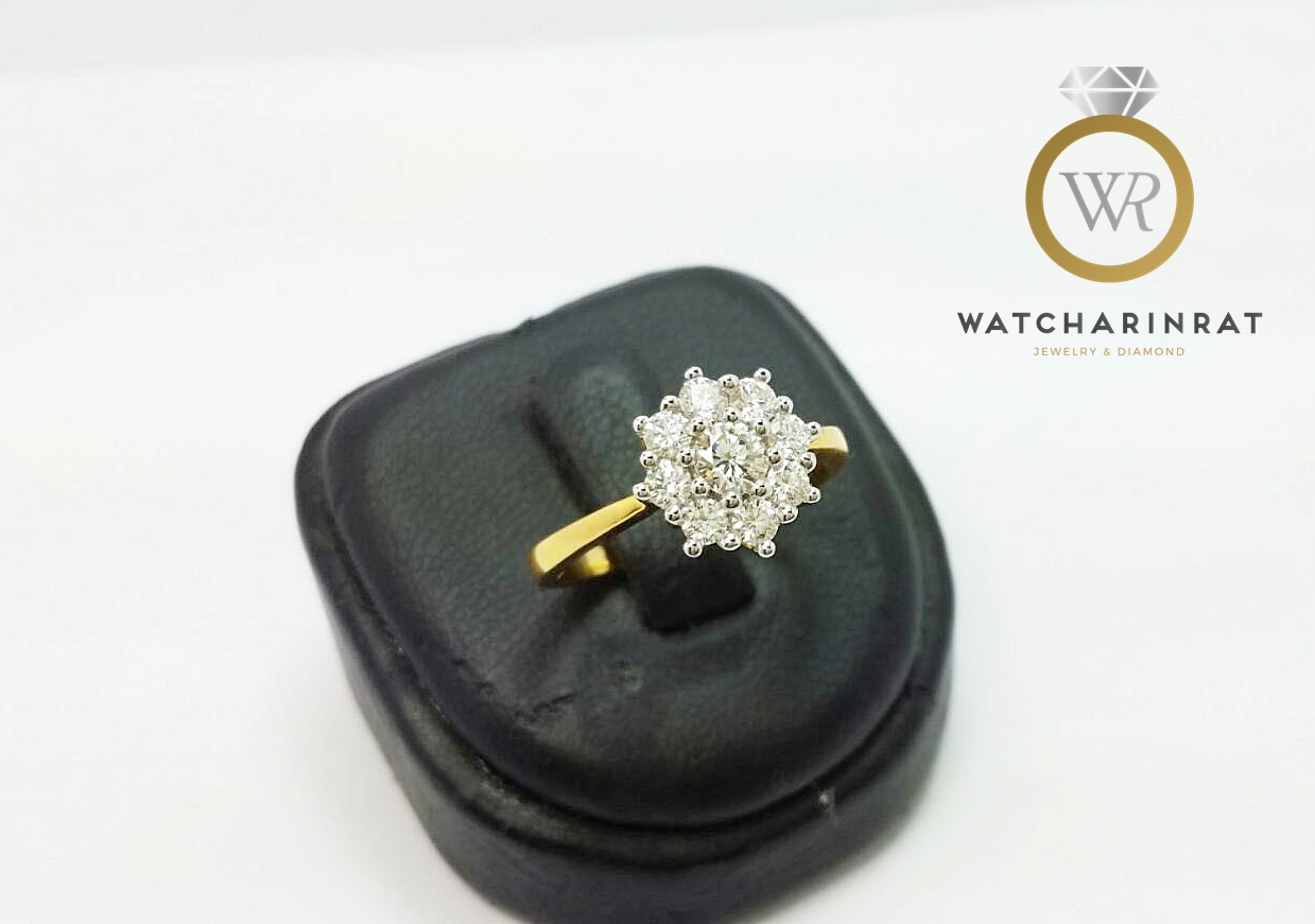 แหวนเพชรสวยหรู ตัวเรือนทองคำแท้ 18K หนัก 3.02 กรัม/เพชรแท้ 9 เม็ด 0.6 กะรัต น้ำ 99 (เพชรกลาง 0.20 กะรัต)เพิ่มเติม