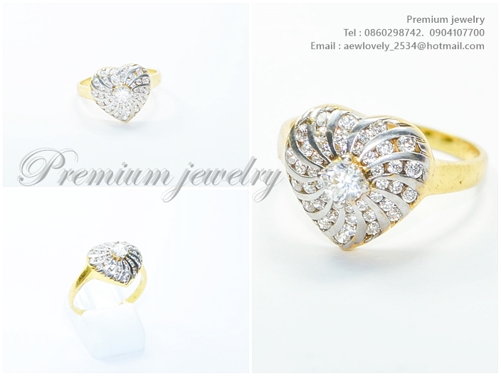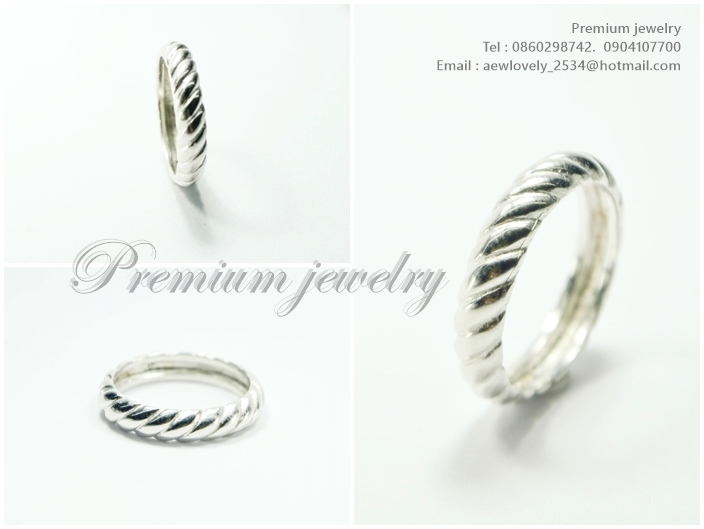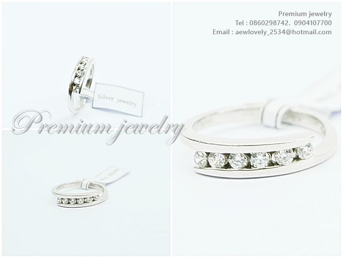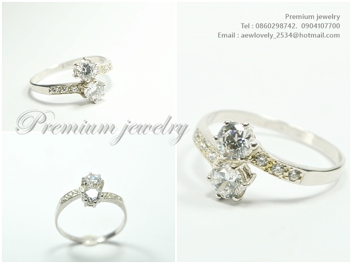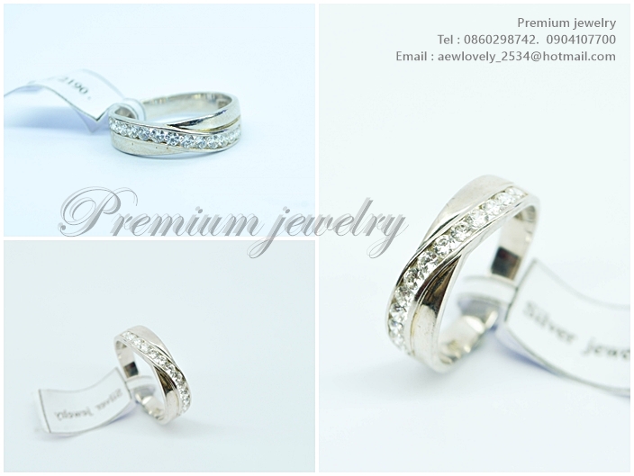 แหวนคู่ วงนอกเป็นทรงกลม สามารถใส่แบบวงเดียวหรือใส่คู่พร้อมกันได้ ตัวเรือนทำจากเงินชุปทองคำขาว ฝังเพชเพิ่มเติม