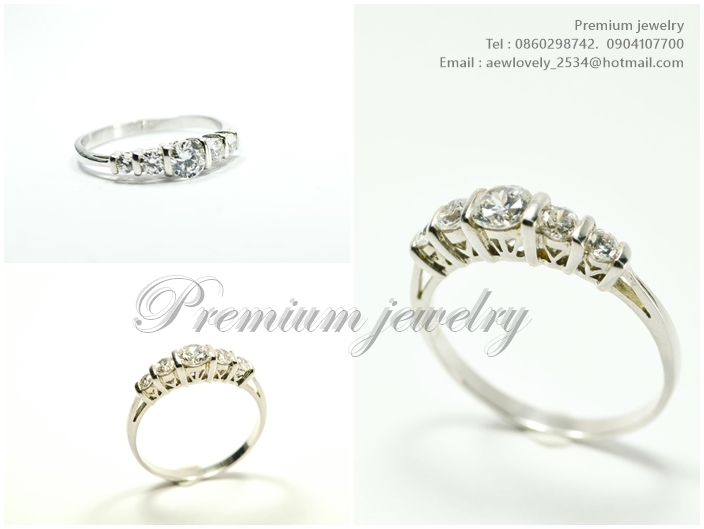 แหวนเงิน ชุบทองคำขาว ฝังเพชรสวิสเกรดเอจำนวน 5เม็ดเรียงกัน เรียบ หรู ดูดีเพิ่มเติม