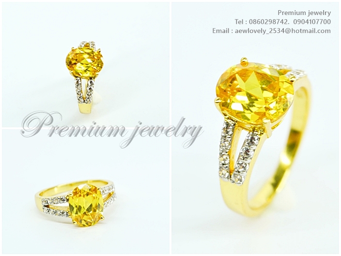 แหวนเงินชุบทอง 18K เม็ดยอดเป็นบุษราคัมน้ำดี ด้านข้างฝังด้วยเพชรสวิสเกรดเอ เพิ่มเติม