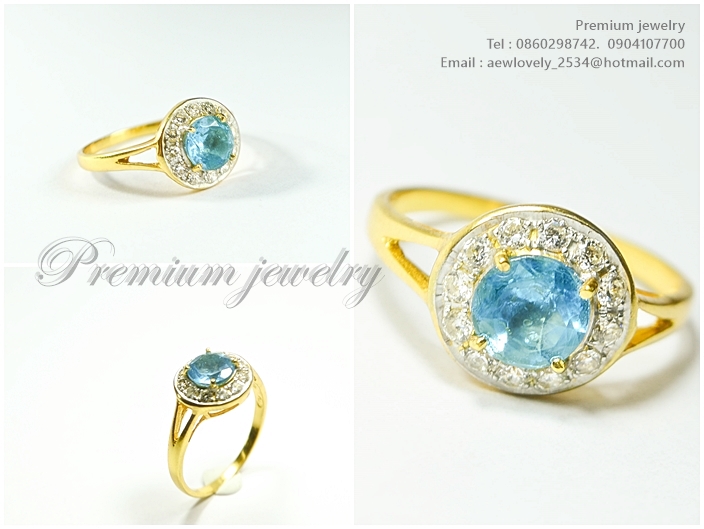 แหวนเงิน ชุบทอง 18K เม็ดกลางเป็ยพลอยแท้สีฟ้าน้ำดี ล้อมด้วยเพชรสวิสเกรดเอ เพิ่มเติม