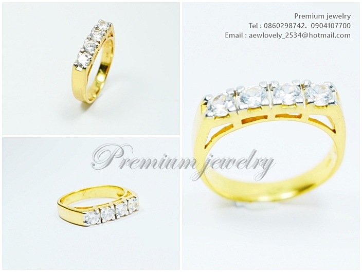 แหวนเงินชุบทอง 18K ฝังด้วยเพชรสวิสเกรดเอ จำนวน 5 เม็ดเรียงกัน เรียบหรู แต่ดูดี ไม่เวอร์คะเพิ่มเติม