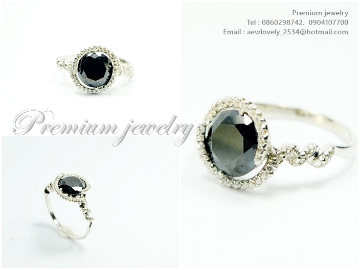 แหวนเงิน ชุบทองคำขาว แบบสวยมาก เม็ดยอดฝังด้วยนิลแท้จากเมืองกาญน์ ล้อมด้วยเพชรสวิสเกรดเอเพิ่มเติม