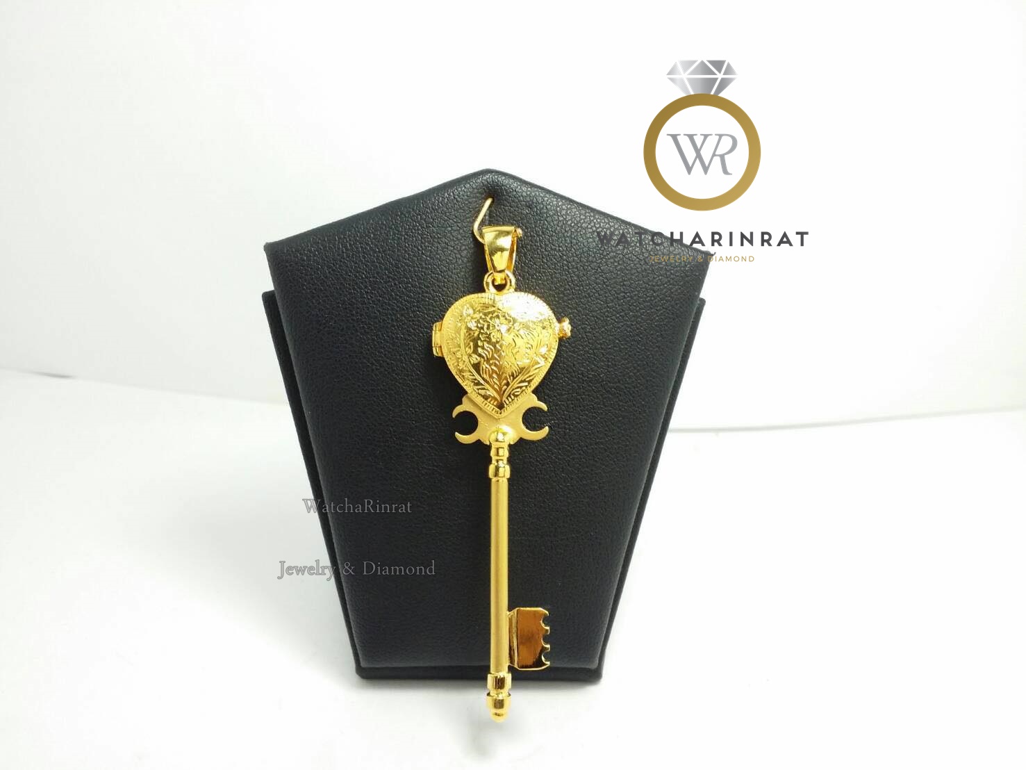 ล็อคเก็ตทรงลูกกุญแจหัวใจ สวยงามน่ารัก ใส่รูปได้ทั้ง 2 ด้าน (รูปอัดหินกันน้ำ)/ ตัวเรีือนทองคำแท้ 90% หนัก 9 กรัม เพิ่มเติม
