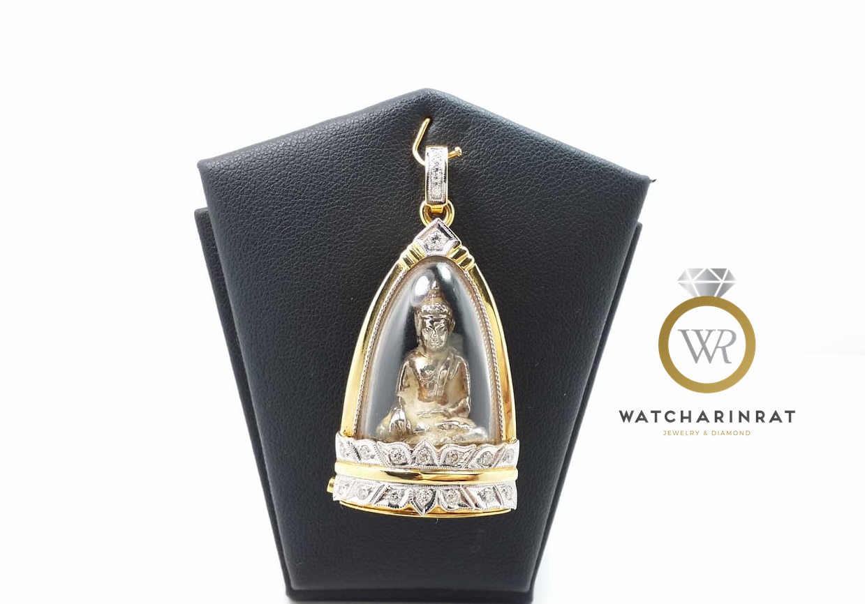 กรอบพระประดับเพชรแท้ ทรงครอบแก้ว / ตัวกรอบเป็นทองคำแท้ 90% หนัก 13.09 กรัม/ประดับเพชรแท้ 19 เม็ด 0.53 กะรัต เพิ่มเติม