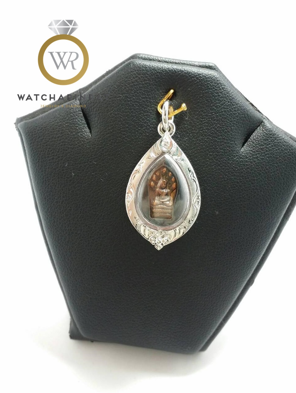 กรอบพระทรงหยดน้ำ /ตัวเรือนทองคำขาว 18K หนัก 2.6 กรัม/ เพชรแท้ 1 เม็ด 0.03 กะรัตเพิ่มเติม