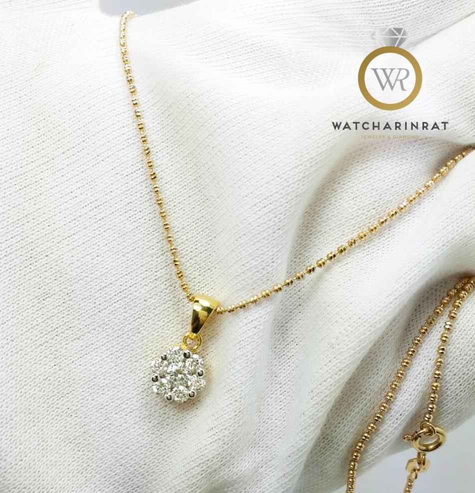 จี้เพชรทรงดอกไม้สวยหรู / ตัวเรือนทองคำแท้ 18K YG หนัก 1.68 กรัม/ เพชรแท้ 7 เม็ด 0.58 เม็ด (เพชรกลาง 20 ตัง) น้ำ 99 vvsเพิ่มเติม