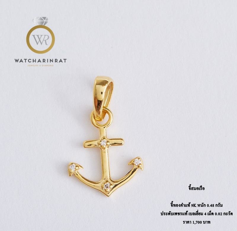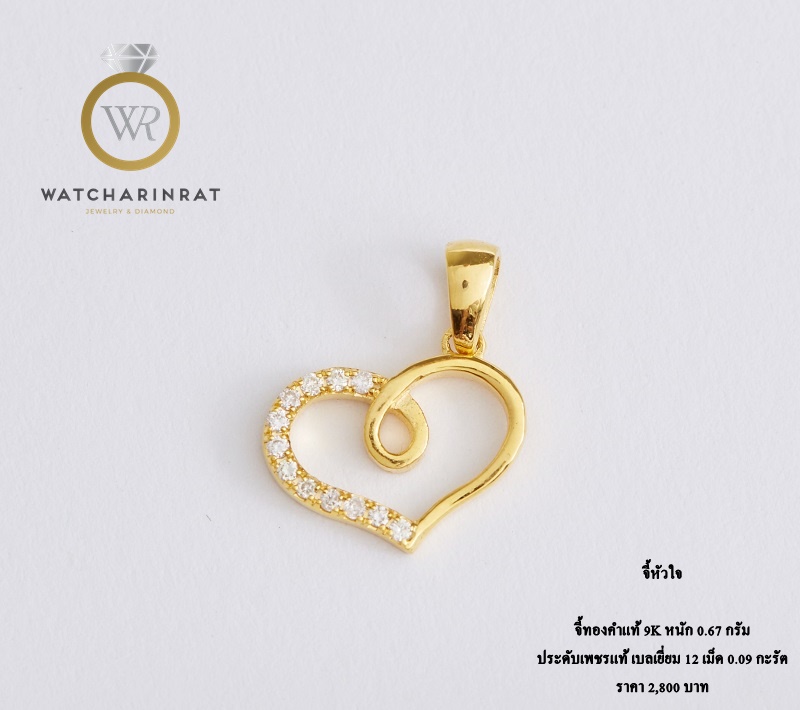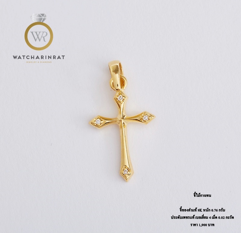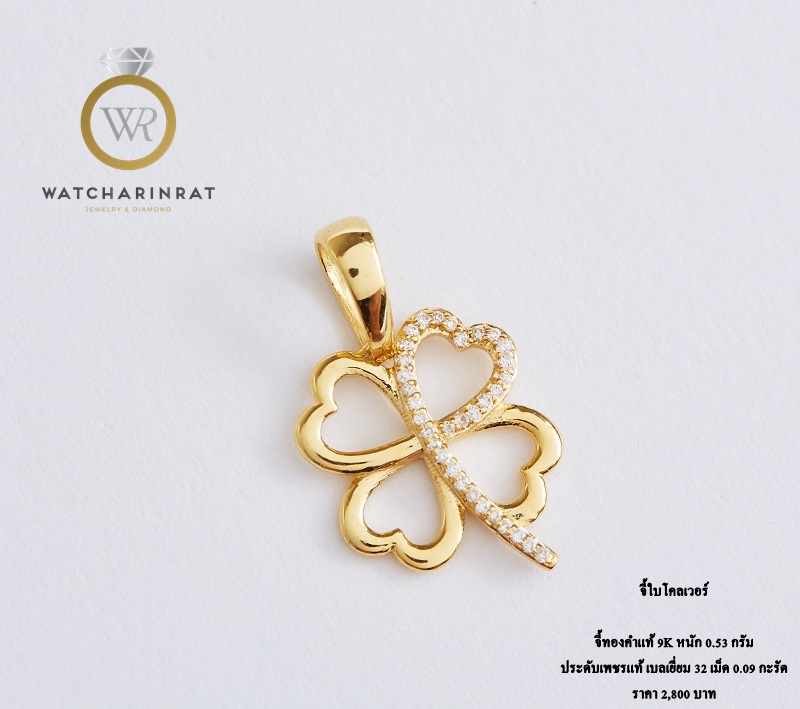 จี้ทองคำแท้ 9K หนัก 0.53 กรัม ประดับเพชรแท้ เบลเยี่ยม 32 เม็ด 0.09 กะรัตเพิ่มเติม