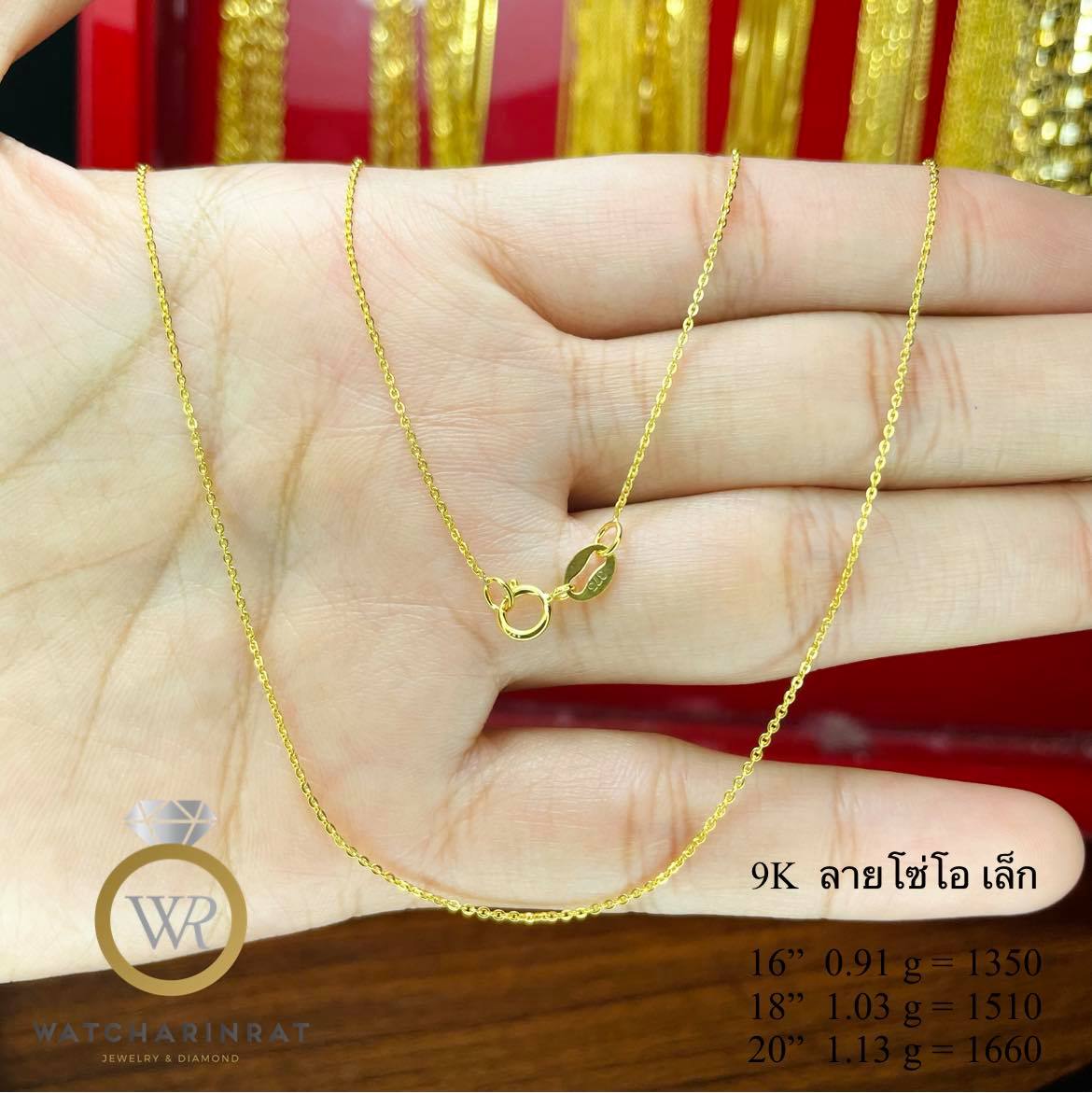 9K ลายโซ่โอ เล็ก 16" 0.91 กรัม 1350 บาท 18" 1.03 กรัม 1510 บาท 20" 1.13 กรัม 1660 บาทเพิ่มเติม