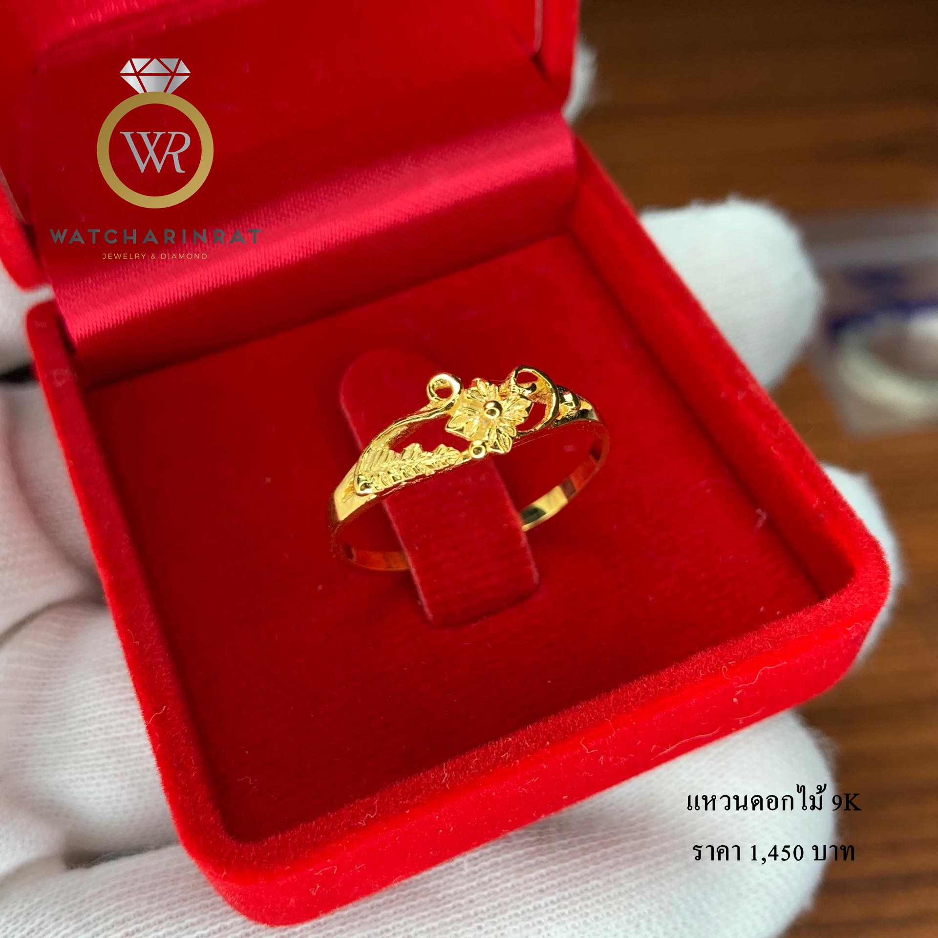 แหวนเพชรสุดคลาสิค สวยหรู ใส่ได้ทุกวัน / ตัวเรือนทองคำแท้ 9K หนัก 3.05 กรัม /เพชรแท้ 5 เม็ด 0.50 กะรัต น้ำ 95 เพิ่มเติม