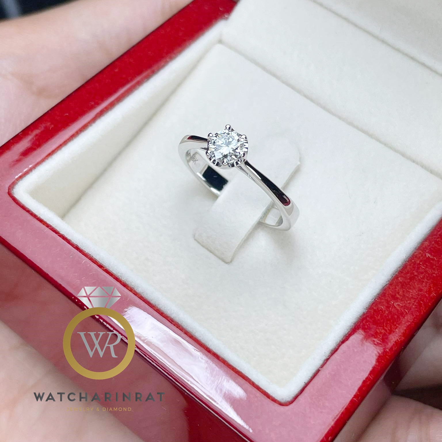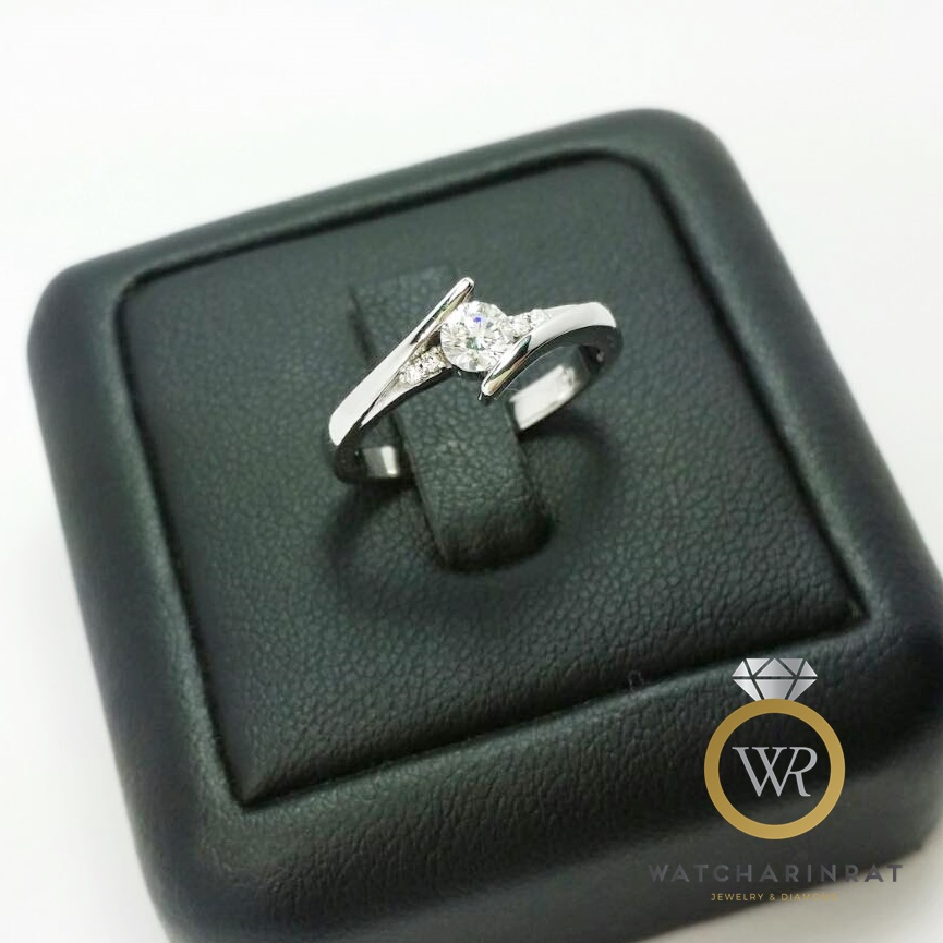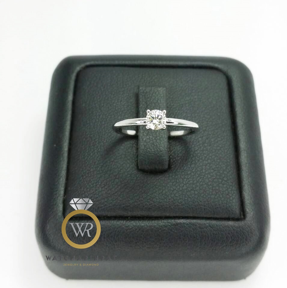 แหวนเพชรเม็ดเดียว สไตล์เรียบหรู แบบคลาสสิค ฮิตตลอดกาล / ตัวเรือนทองคำขาว 18K หนัก 2.8 กรัม / เพชรแท้ 0.30 กะรัต น้ำ 98 เซอร์ GIAเพิ่มเติม