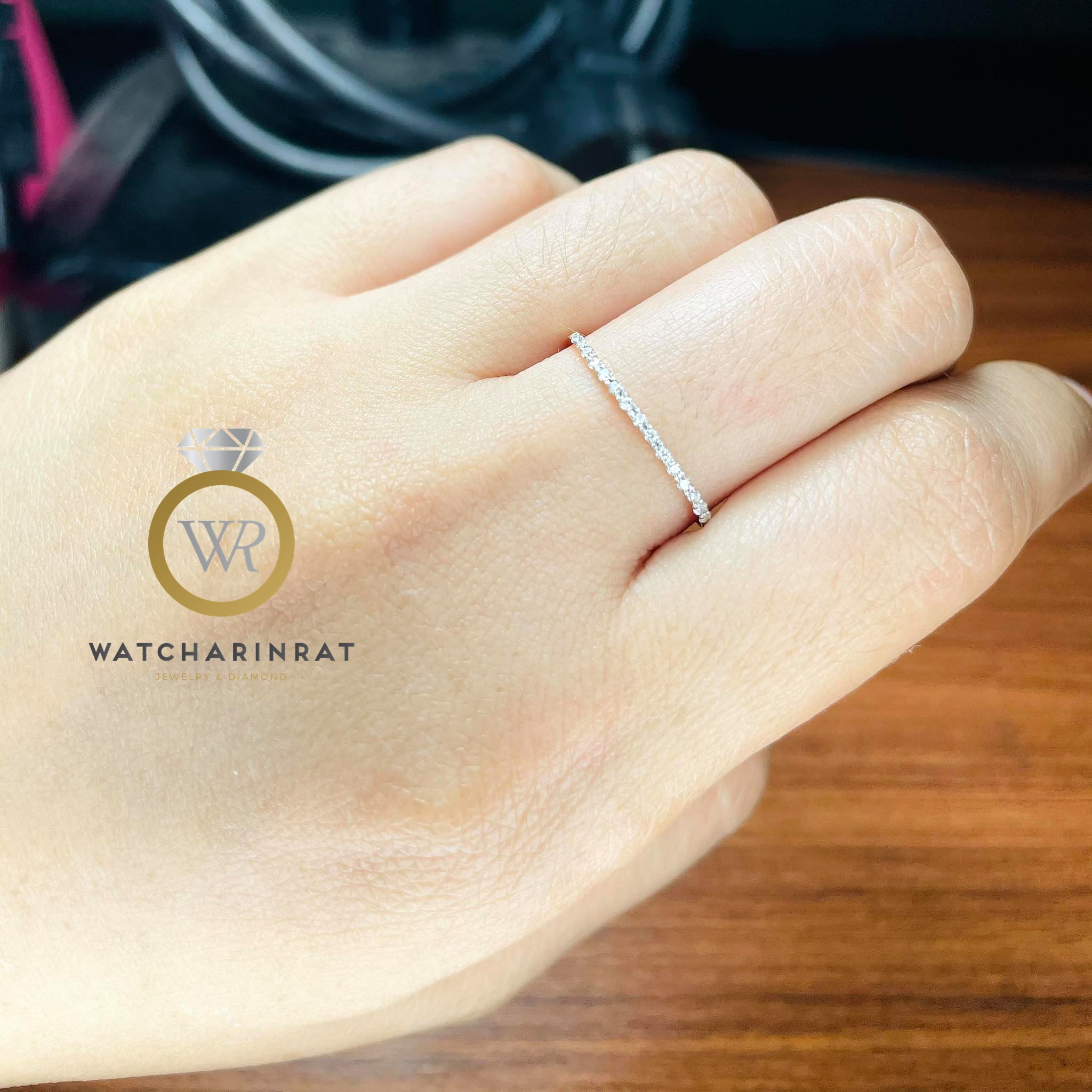 แหวนเพชรแถว แบบคลาสสิค ใส่ติดนิ้วได้ตลอด / ทองคำขาว 18K WG 2.3 กรัม / เพชรแท้ 28 เม็ด 0.7 กะรัต น้ำ 97-98 / ไซด์ 52 (สั่งไซด์ได้ค่ะ)เพิ่มเติม