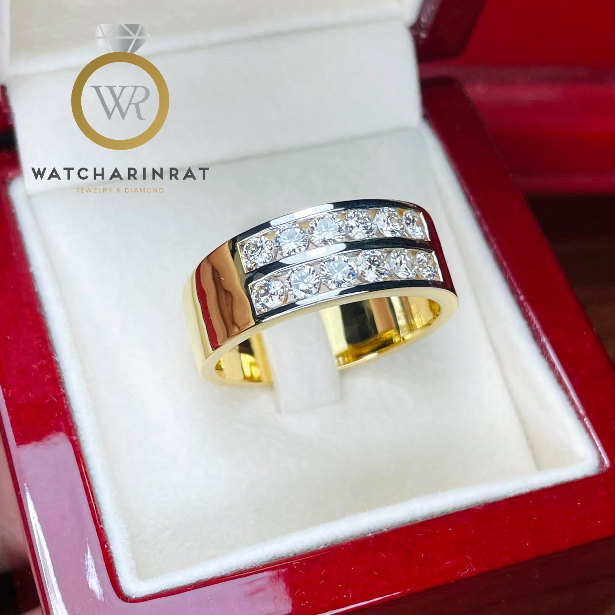 แหวนเพชรแถว แหวนเพชร 2แถว ทรงเรียบหรู ใส่ติดนิ้วได้ตลอด แบบคลาสสิคตลอดกาล ใส่ได้ทั้งาชยและหญิง / ตัวเรือนทองคำแท้ 9K หนัก 7 กรัม / เพชรแท้ 12 เม็ด 1.2 กะรัต น้ำ 95-96 เพิ่มเติม