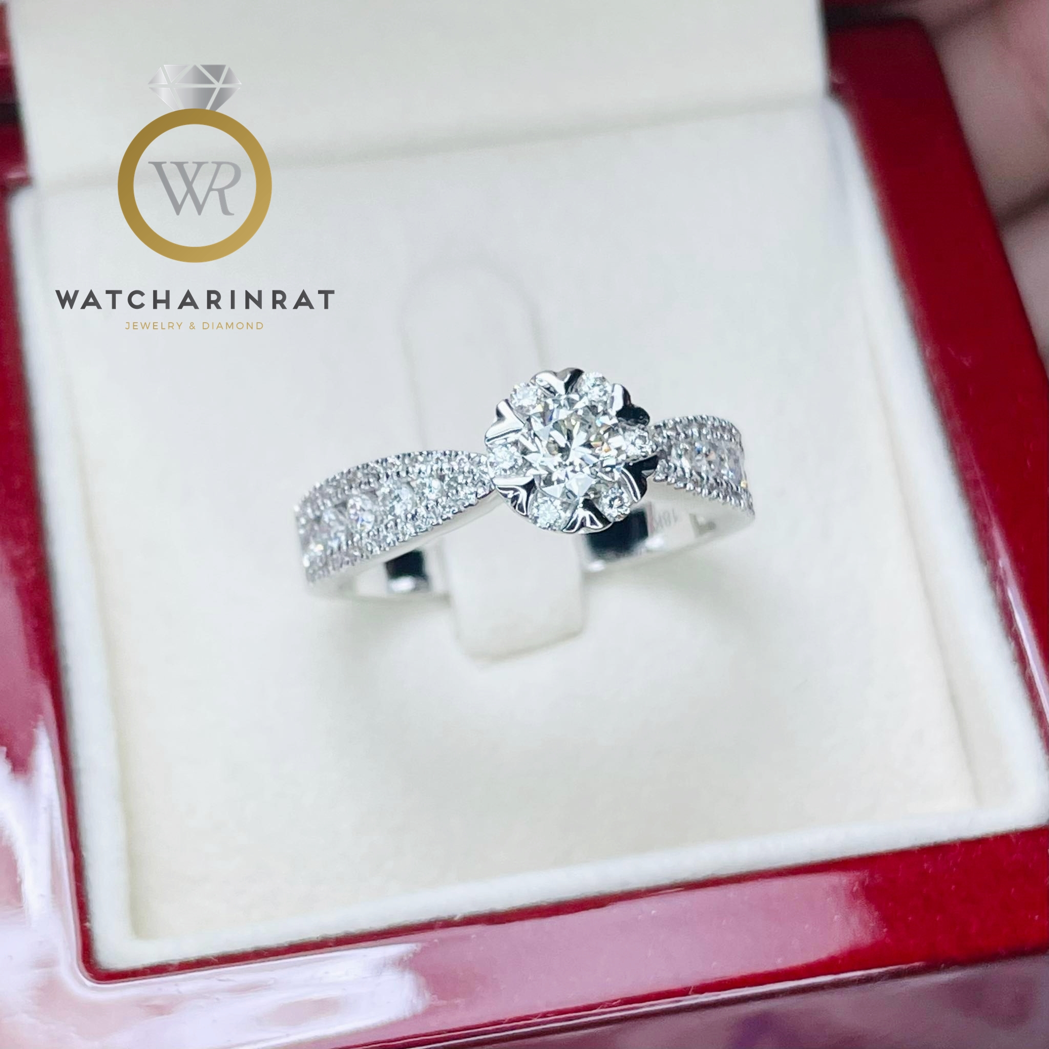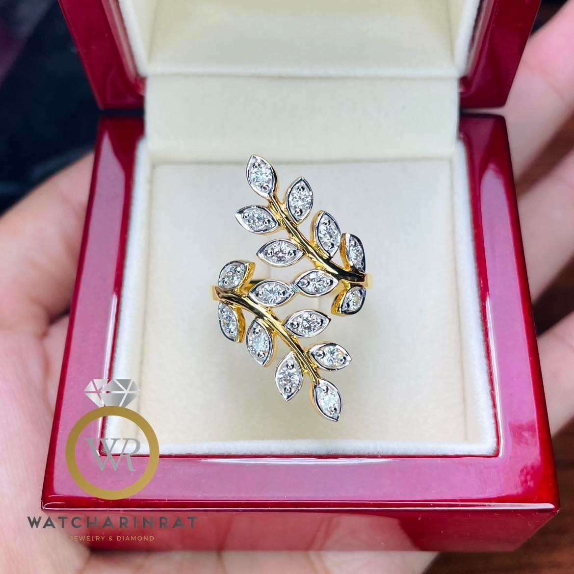 แหวนใบมะกอก ทรงคลาสสิคตลอดกาล / ตัวเรือนทองคำแท้ 18K หนัก 5.5 กรัม / เพชรแท้ 16 เม็ด 0.80 กะรัต เพิ่มเติม